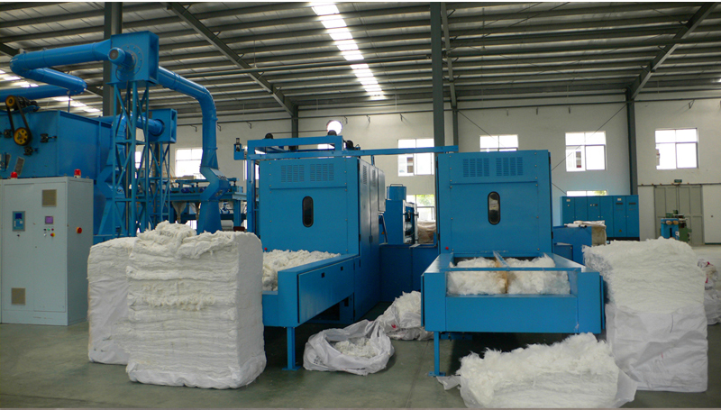 開棉、均棉定量喂入,多臺復式使用可按比例混合不同纖維,自動控制調(diào)節(jié)范圍大,使用不同纖維配比準確,混合均勻。